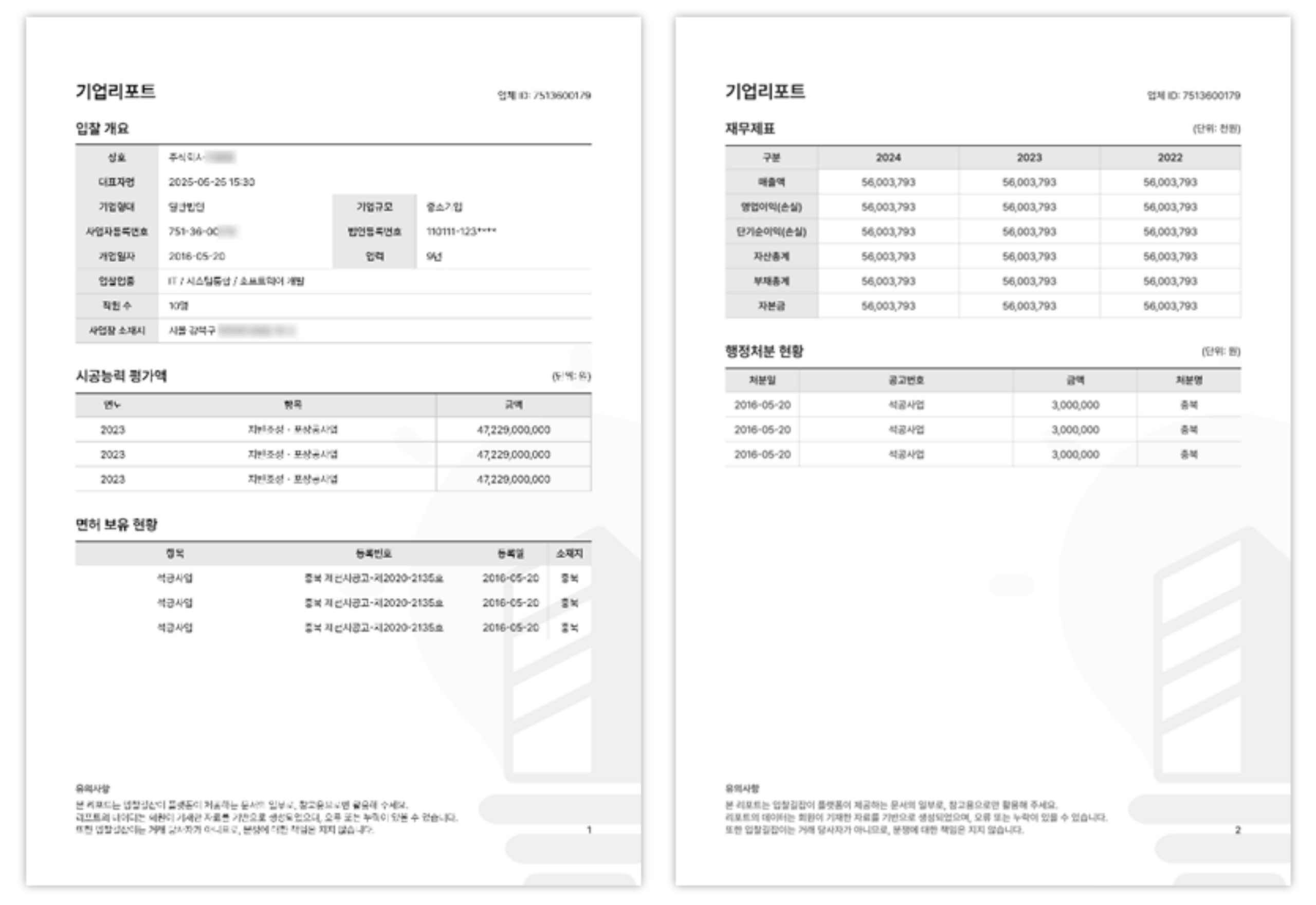 신규 협력 업체 자료 조사, 수기 기업 보고서