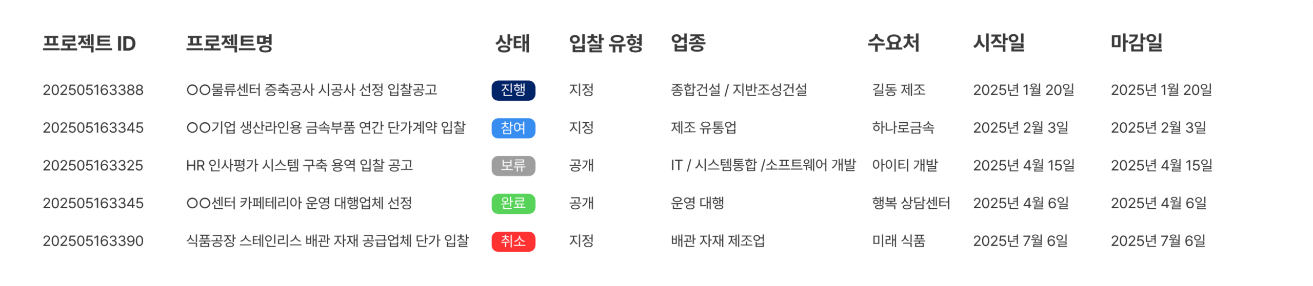 - 입찰/견적 관리