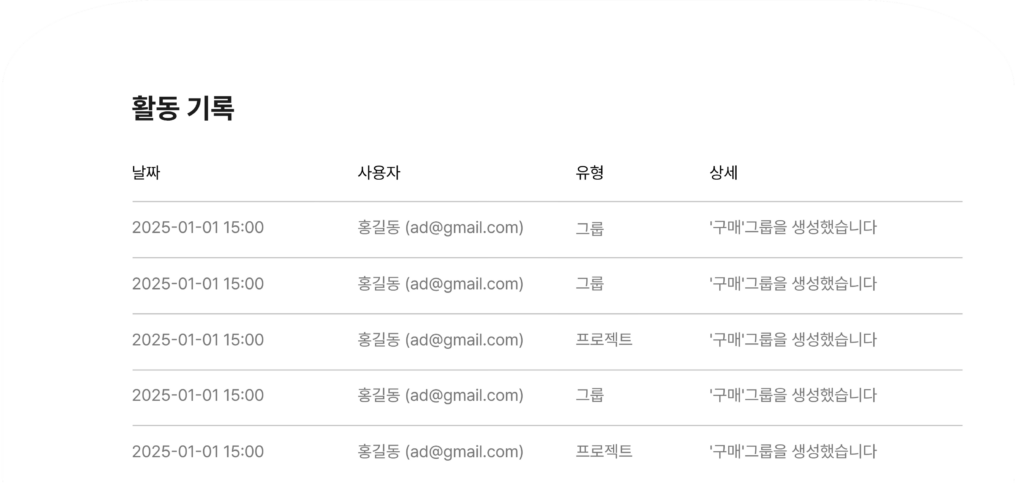 사용자 초대, 사용자 관리, 활동로그 제공으로